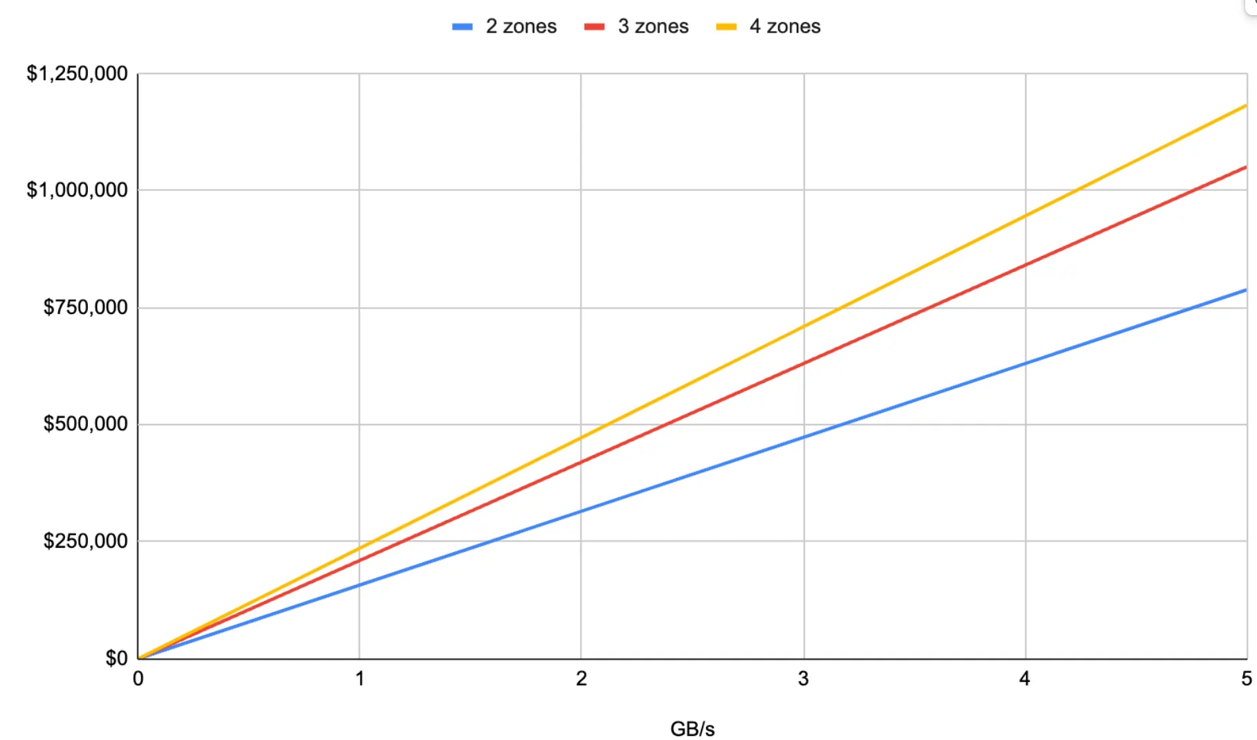 To give a concrete example: for a three-zone Kubernetes cluster in AWS, at current prices, every GB/s of traffic can translate to $210,000 per year in cross-zone spend. These charges can add up quickly!